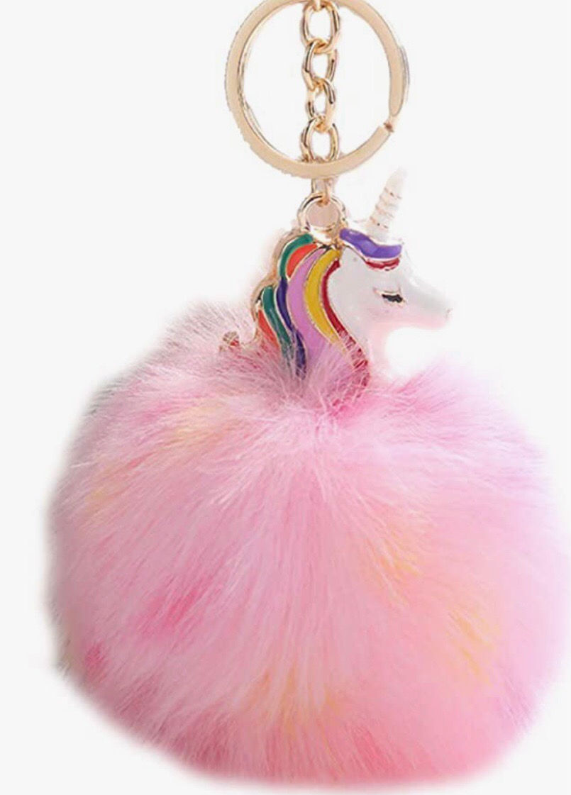 Cute Pom Pom Fur Ball Unicorn Keychain Colorful Soft Fluffy Ball Bag Hanging Pen
